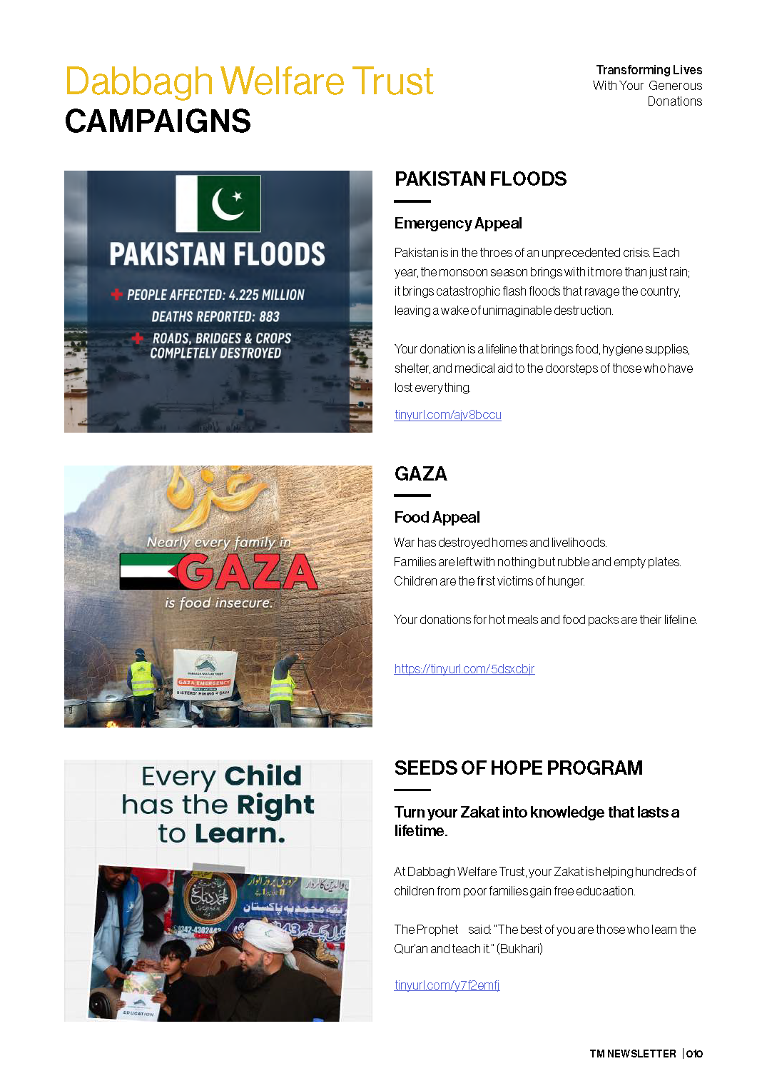 A registered international charity, which aims to help the world’s poorest people with their sufferings, by distributing collectively Sadqa, Zakat and Lillah in a prophetic way.